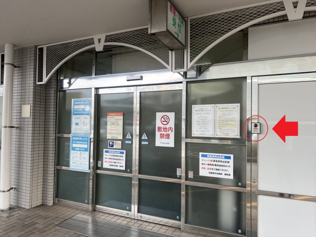 ご来院の際は、救急入口自動ドア右のインターホンを押してお知らせください。