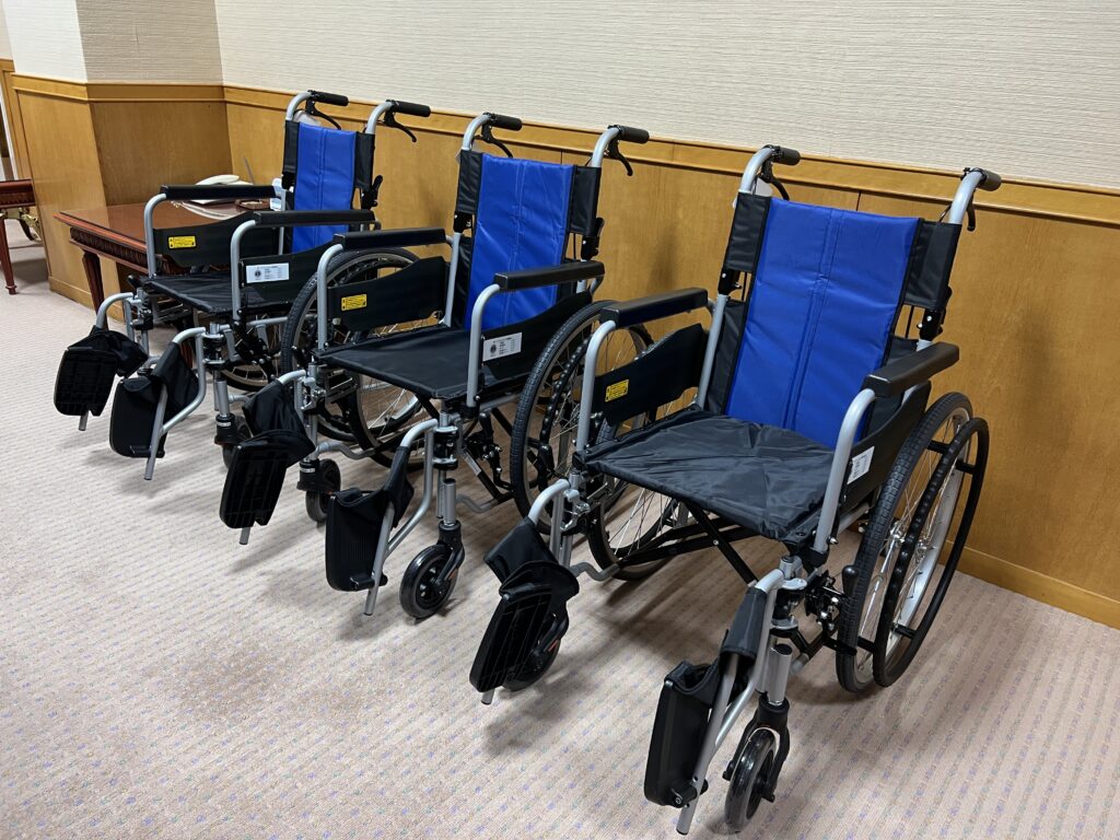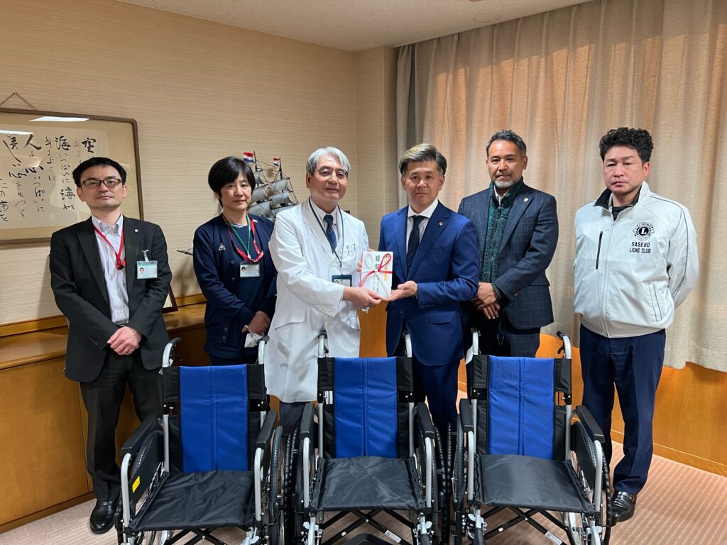 ライオンズクラブ国際協会 佐世保クラブ・佐世保西クラブ・平戸クラブ・佐世保ブルークラブ・佐世保グリーンクラブの5クラブ様より、車椅子3台を寄贈いただきました。