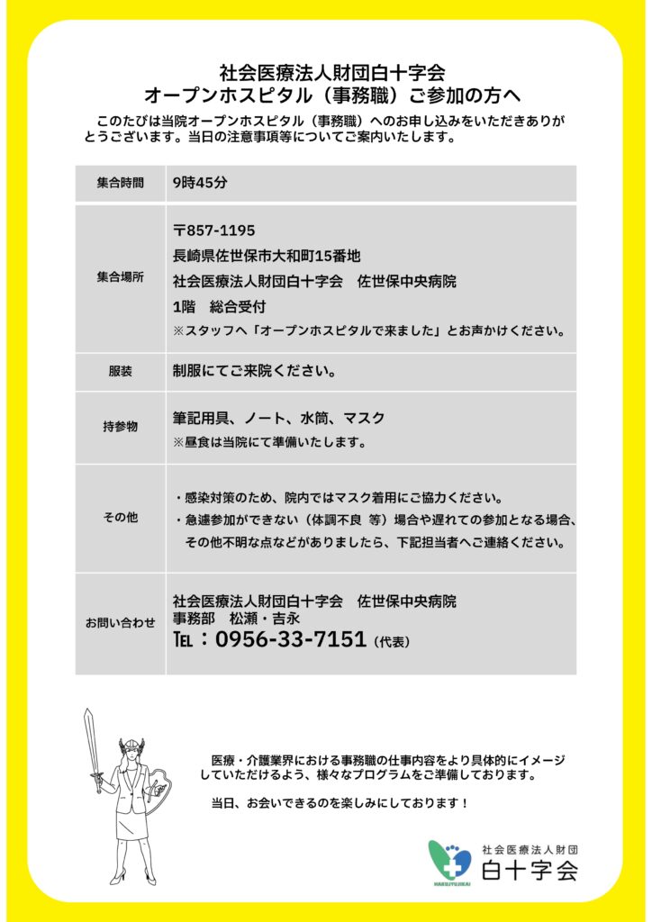 【内容に関するお問い合わせ】佐世保中央病院 事務部 松瀬・吉永 ☎0956-33-7151